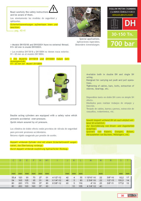 Doppeltwirkende Hohlkolbenzylinder Typ DH