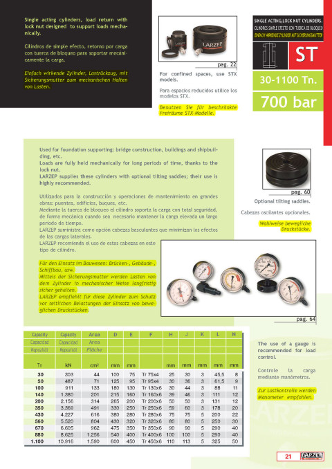 Einfachwirkende Zylinder mit Sicherungsmutter Typ ST