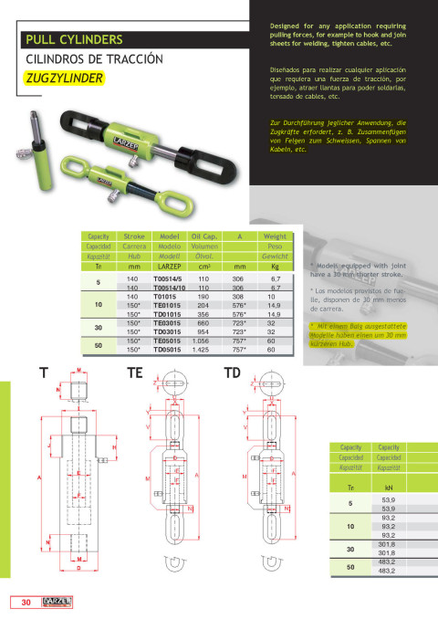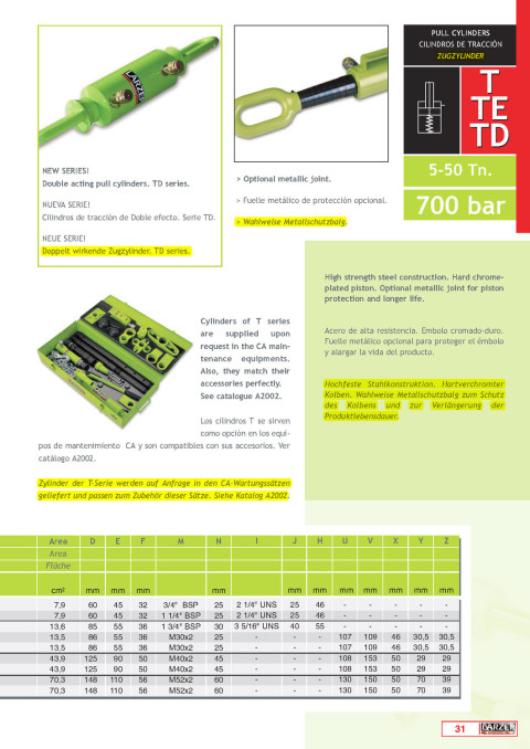 Doppeltwirkende Zugzylinder Typ T/TE/TD